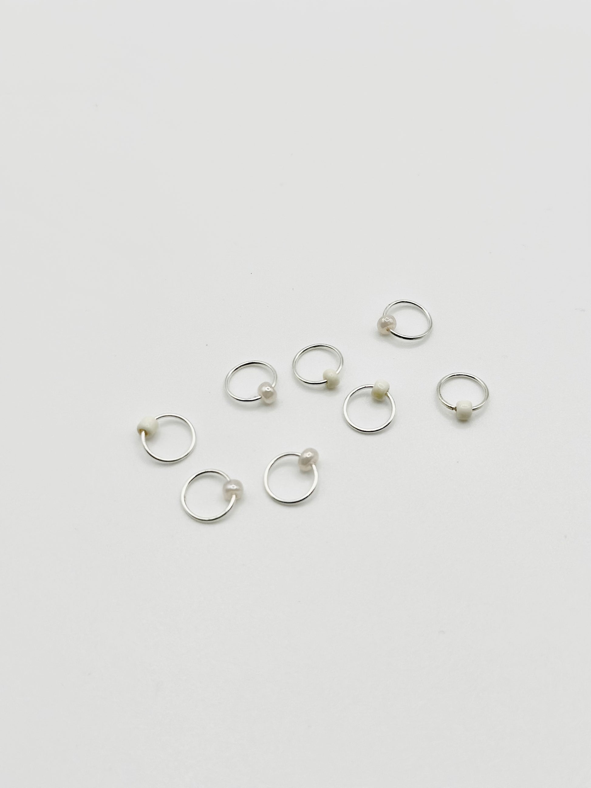 These Handmade glass bead knitting stitch markers will nestle into your stitches and stay put while you're working - they are easy to remove and reposition while knitting - creating increases, counting rows or repeats, or working cables. The construction is sturdy to accommodate the size of yarn or collection of stitches being marked. Each set is unique and no bead is the same like our other metal stitch markers, they cling to the Maker's Keep or any magnet.