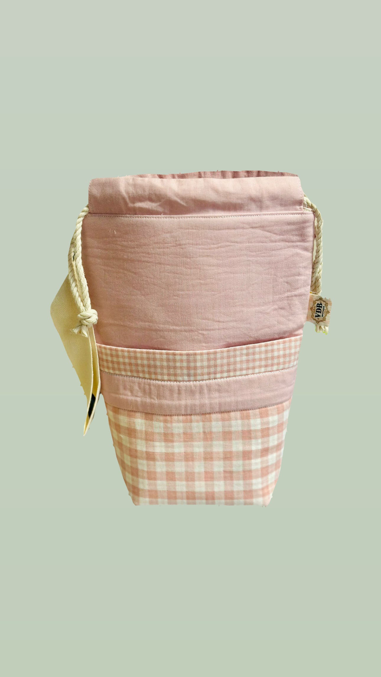 The bag has cotton drawstring and a handle to hold on to. leave your yarn in it as you work on your project